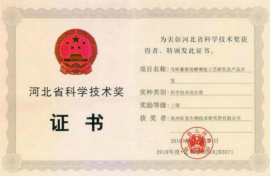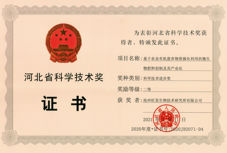 河北省科技进步二等奖证书